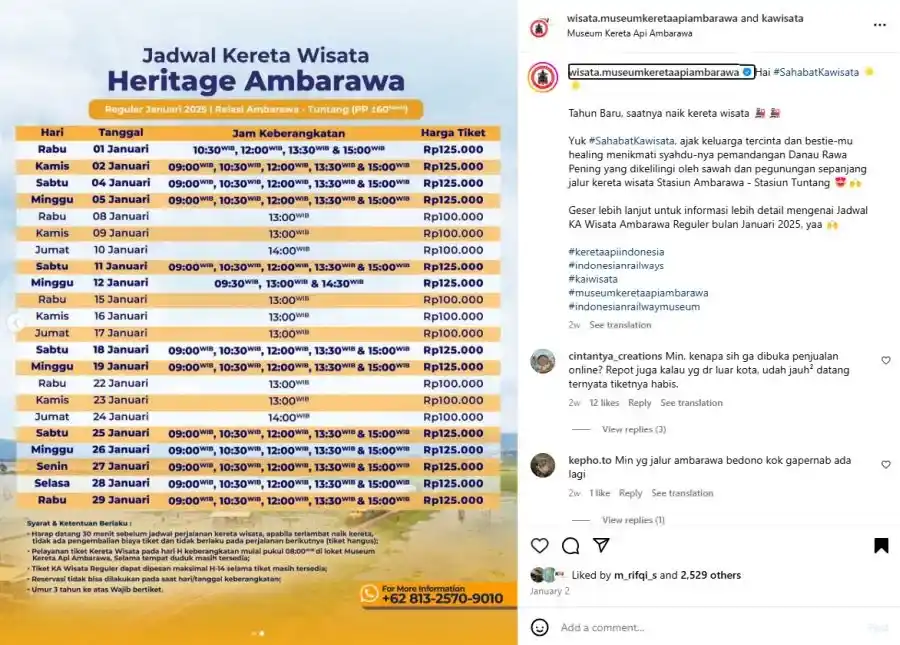 Membaca berbagai komentar di Instagram wisata.museumkeretaapiambarawa banyak calon penumpang yang kecewa, karena sudah datang jauh-jauh dari luar kota tetapi kehabisan tiket.