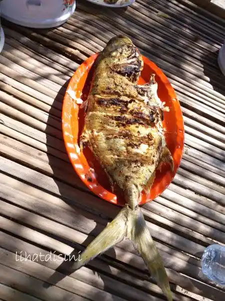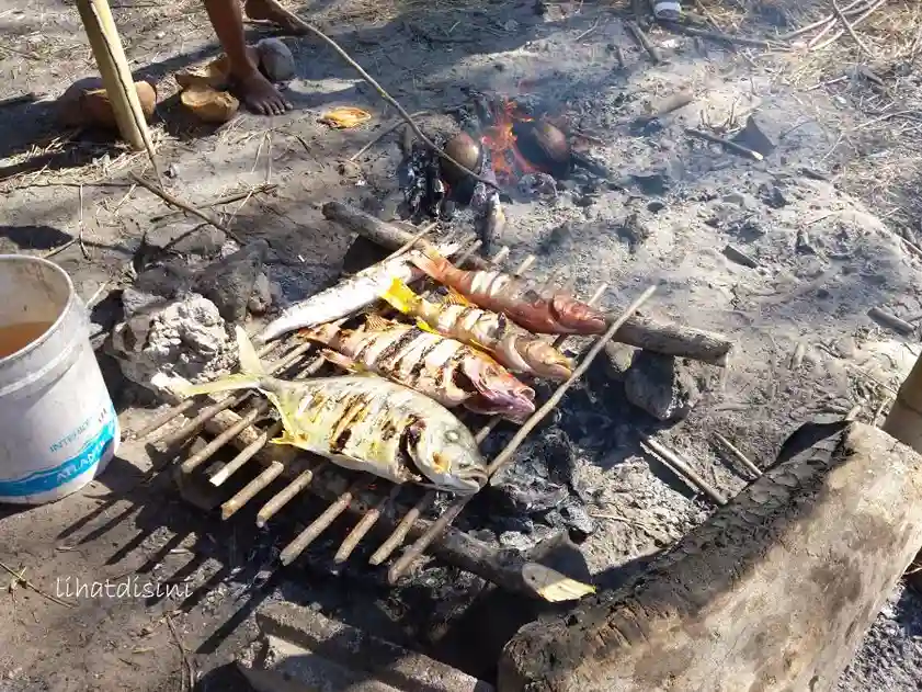 Awak perahu dan pemandu wisata telah menyiapkan ikan-ikan segar untuk dibakar sebagai lauk makan siang.